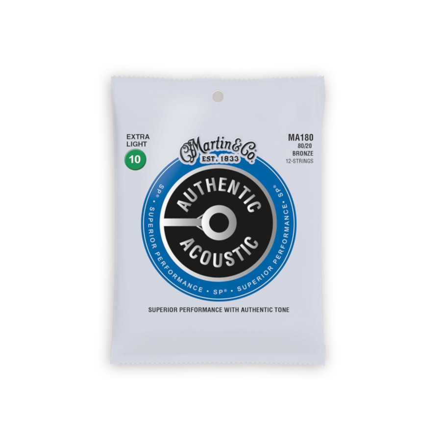 Le corde per chitarra acustica 12 corde MA180 di Martin & Co della serie Authentic Acoustic SP® sono composte da un avvolgimento in Bronzo 80/20 di alta qualità su filo ultra resistente alla trazione e alla corrosione. Offrono un timbro genuino ed equilibrato, stabililità di accordatura e grande suonabilità. MA180 in scalatura Extra Light presentano i seguenti diametri: 10-14-23-30-39-47 e 10-14-10-12-18-27